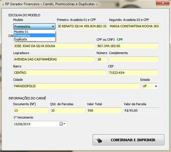 O RP Gerador Financeiro é um software gratuito para emissão de Carnês, Promissórias, Duplicatas e Recibos de Pagamentos. Conta com vários modelos de documentos, é muito fácil utilizá-lo.